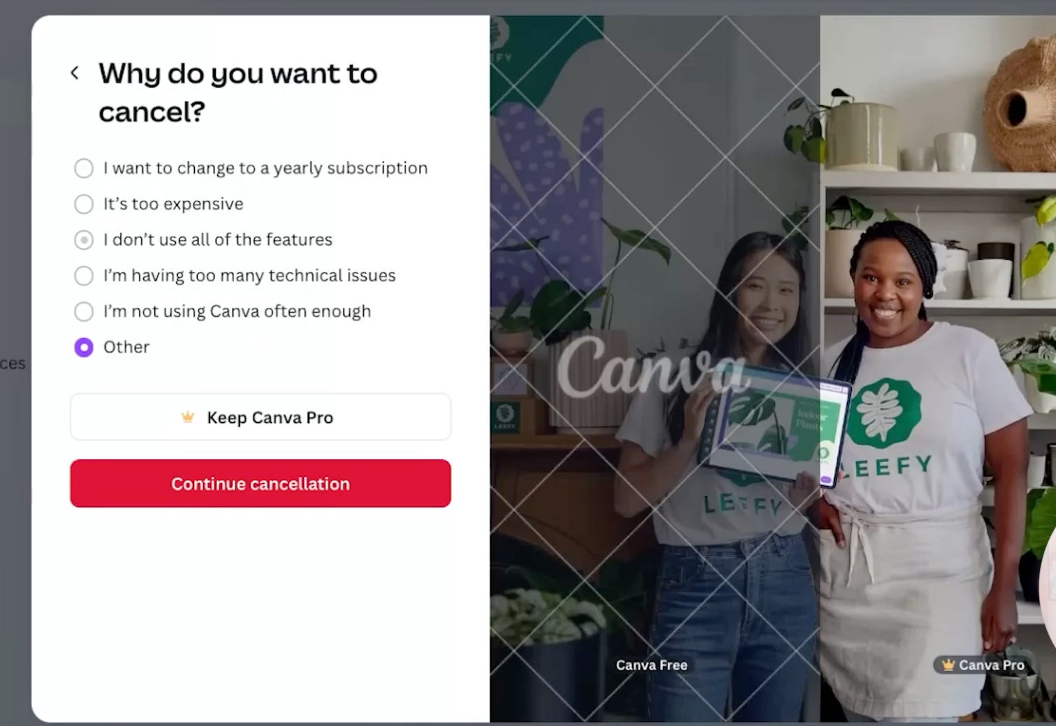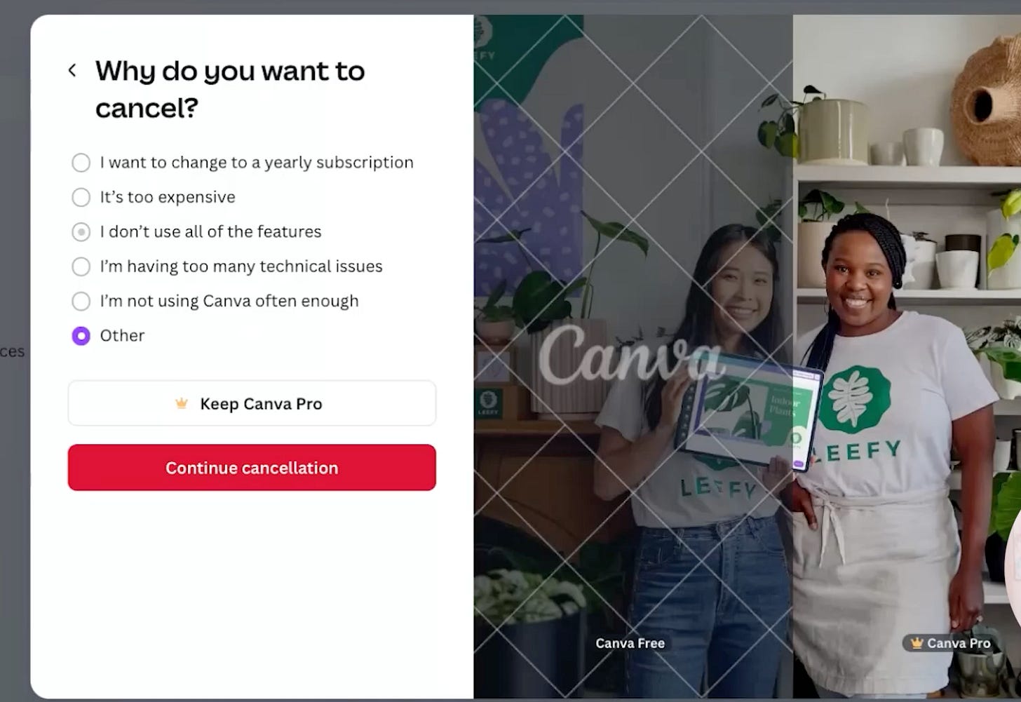 The lesson here not “copy the Canva flow to save users from churning.”