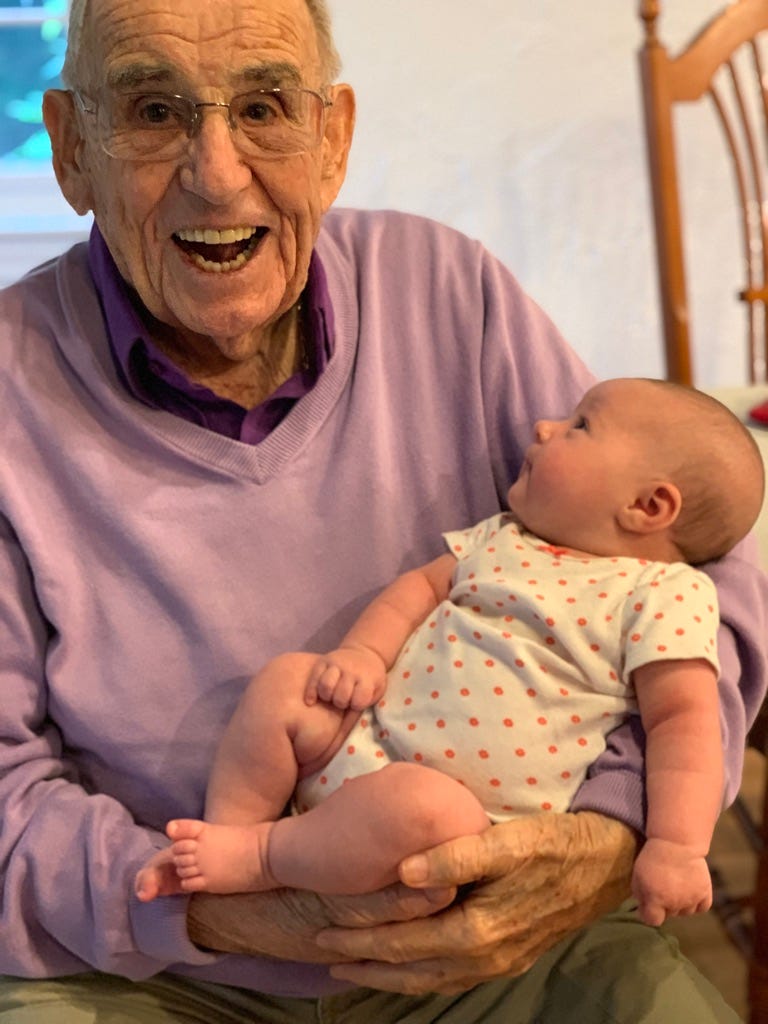 Here’s a picture of him meeting my daughter (his great granddaughter) last summer.