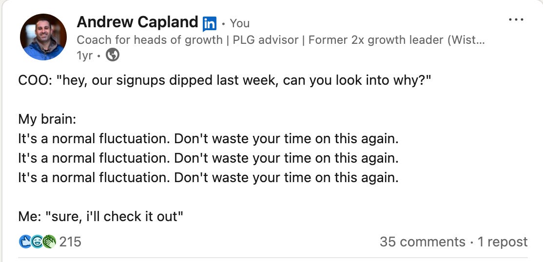 Reacting to normal variance trains you, and your team, to chase noise... instead of focusing on what actually drives growth.